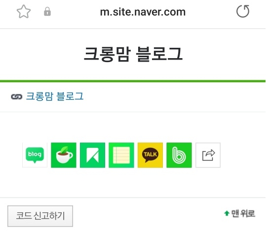 또한 qr코드 위나 아래에 네이버 로고나 이미지, 문구를 삽입해서 만들 수 있습니다. 저는 마음에 드는 스킨을 적용한 다음 qr코드 아래에 '크롱맘 블로그'라는 문구를 넣어주었습니다.